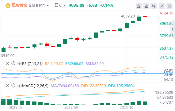 10 月9 日黄金周四欧洲早盘交易仍然不利,尽管基本面信号好坏参半,但仍成功突破4,000 美元心理关口。以色列和哈马斯就和平协议第一阶段达成协议可能会缓解一些地缘政治紧张局势并鼓励获利了结 ,尤其是在持续超买的情况下避险贵金属 。此外,美元每周升势加强,升至8月初以来的最高点 ,这也被证明是大宗商品下跌的另一个因素。